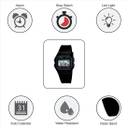 This digital watch sports a stylish plastic strap which provides durability and strength. It comes with a firm clasp that allows the watch to sit firmly on your wrist. It also has 3 buttons to adjust the watch's settings.