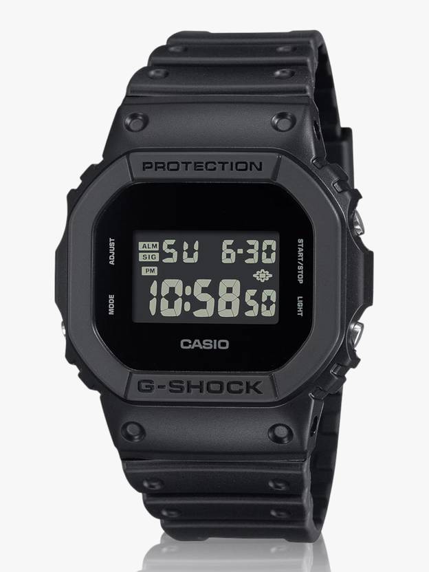 This is a black-and-white themed "Solid Colors" G-Shock model in black. This watch is entirely black, and its plain texture is emphasized by the single-tone color. The matte color on the body and band of the watch not only allows for a simple color scheme, but also emphasizes the shape of the watch itself. With its distinctive solid design, this model can be worn as a fashion statement.