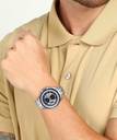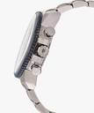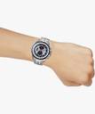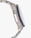 The silver-blue dial of the watch is held in place by the stainless steel straps of the watch. The mineral glass of the dial renders it sturdy and durable. The watch has 100 meter water resistance.