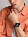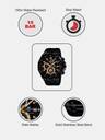 This analog watch comes with a stainless steel bezel and strap which gives it durability and stability. It has a push button three-fold clasp which secures comfortably around your wrist. It also has a black, stainless steel strap which goes well with any formal or semi-casual apparel.