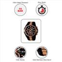 The watch’s dial is surrounded by a rose gold bezel with several markings on it. The watch’s dial has its own party going on – it features subdials and a small date display window on the side. The mineral glass protects the watch from scratches and damages.