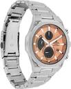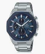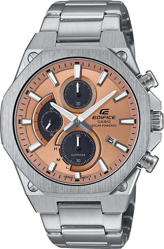 Slim Solar Powered Chronograph with Sapphire Crystal | Although multi-hand chronograph cases tend to be thick, this is a solar powered chronograph with a case kept to a thickness of 9.7 mm to provide an enhanced fit. The watch boasts a flat octagonal bezel with a hairline finish that creates a sporty yet luxurious design. Uses a scratch-resistant sapphire crystal.