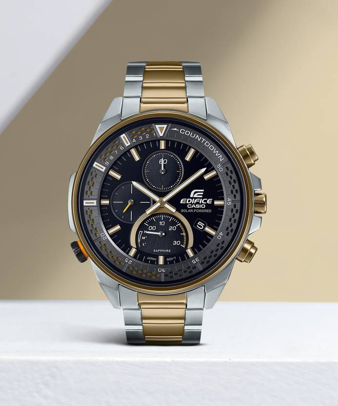 Introducing slim, sporty, solar-powered EFS-S590 Series chronographs. The sporty design of these multi-hand chronographs come packed in a case that is only 9.9mm thick for a comfortable fit. An inner ring contributes to the sporty design of these watches. A countdown feature comes in handy for racing team members who need to keep track of a large number of time-critical events.