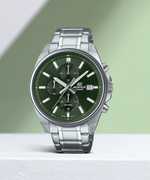 Strike just the right chord with a mid-sized classic EDIFICE chronograph featuring a bold pairing of fine detail and design.