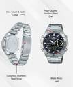 Digital inset dials deliver a variety of functions, including world time, 1/100 second stopwatch, and countdown