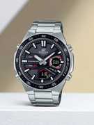 Digital inset dials deliver a variety of functions, including world time, 1/100 second stopwatch, and countdown