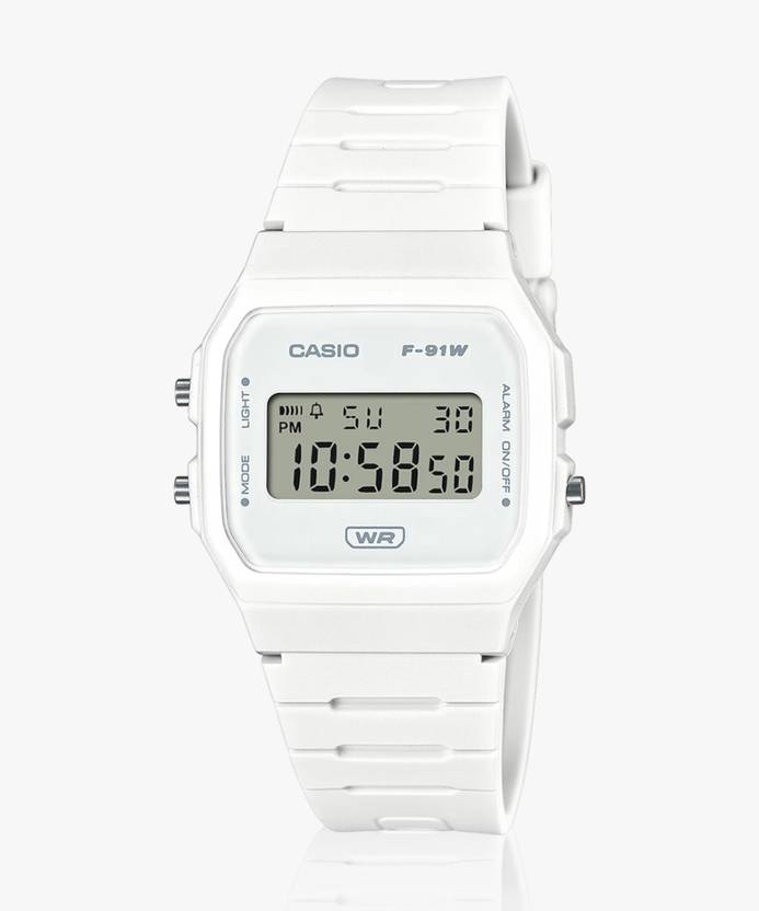 A favorite for decades the slim, lightweight F-91 with digital LCD now with a minimalist face, fewer mode indicators, and more environmentally responsible materials.