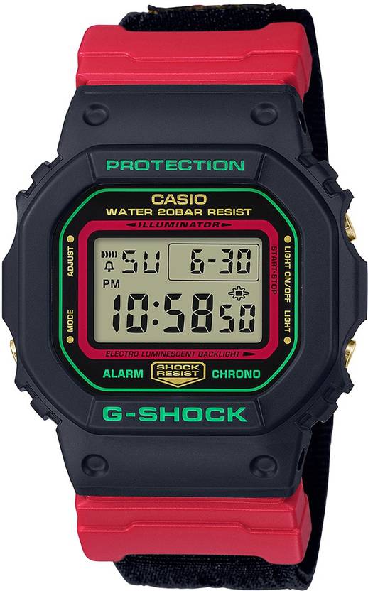 This new red and green Christmas color accented special Winter Premium model is the latest additions to the G-SHOCK lineup of watch that have been pushing the limits of timekeeping toughness since 1983. Base model is the original square face DW-5600 with a cloth band. This special color model is sure to become cherished possessions, regardless of whether it is purchased or received as a gift.