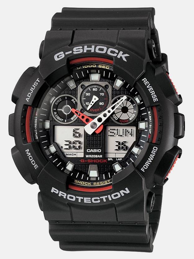 CASIO GA-100-1A4DR G-SHOCK Black-Red Dial Black Resin Strap Analog-Digital Watch - For Men