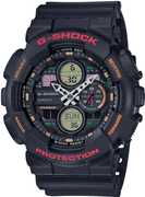 These new models are the latest additions to the G-SHOCK GA-140 Series of digital-analog combination timepieces. The GA-140GB has a glossy black finish and gold highlights.