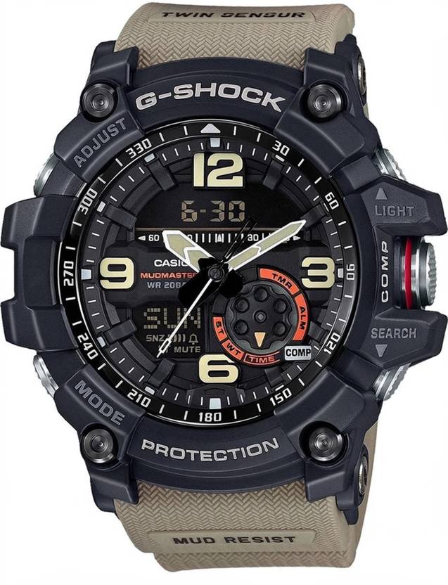 MUDMASTER-Mud Resistance structure, Neobrite, Digital compass (NORTH):Hand indication of north (20 seconds continuous measurement),Measures and displays direction as one of 16 points, Measuring range: 0 to 359, Thermometer: Display range:10 to 60C (14 to 140F),Display unit: 0.1C (0.2F), World time 31 time zones, 100-second stopwatch, Measuring capacity: 23:59'59.99'', 5 daily alarms (with 1 snooze alarm), Hourly time signal, Low battery alert, Full auto-calendar (to year 2099), Button operation tone on/off