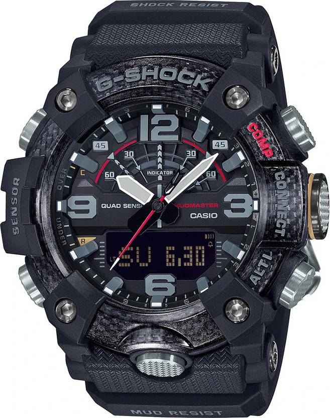 Mineral Glass::Carbon Core Guard structure::Neobrite::Mud Resistant::World time 38 time zones (38 cities + coordinated universal time), daylight saving on/off, Home city/World time city swapping::1/100-second stopwatch::Countdown timer::Regular timekeeping Analog: 3 hands (hour, minute (hand moves every 10 seconds), second) Digital: Hour, minute, second, am/pm, month, date, day::Accuracy: 15 seconds per month