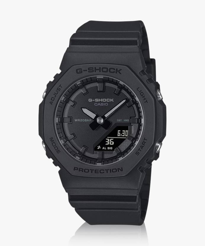 Street-smart and nature-minded a fashionable G-SHOCK dressed in all black. The monochromatic design with a matte finish makes for a simple, yet bold design. Key resin components of the bezel and band are made with bio-based resin. Produced using renewable organic resources, this material is expected to help reduce environmental impact. Choose your favorite all-black timepiece the GMD-S5600, a smaller, slimmer version of the iconic G-SHOCK design, or the ever-popular GMA-P2100 analog-digital combination.
