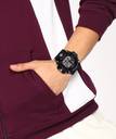 The Casio G485 G-Shock watch’s resin band is tough and comfortable, with its pin-and-buckle clasp offering you a secure wear.