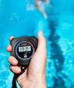 Stopwatch with long battery that lasts for 3 years. Opted with auto-retrieve function to restore data. Water resistant, wearable around sinks, during swimming, sports and other athletic activities.