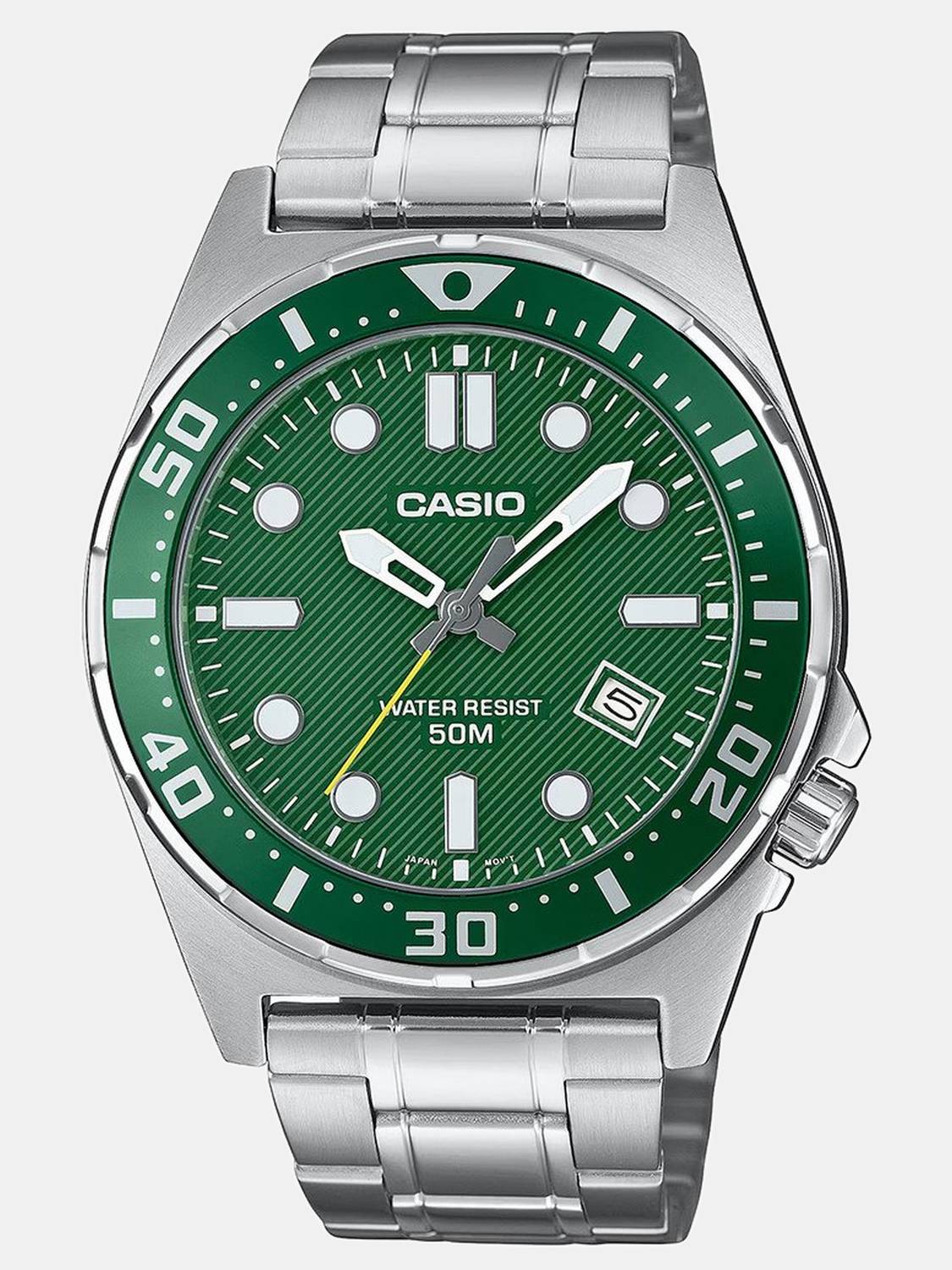 Satisfy your active, adventurous side with an analog timepiece that exudes the bold confidence of a professional diver. Water resistance up to 50 meters and the date display at the 4 oclock position add an extra handy touch.