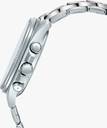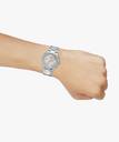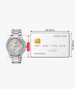 Mineral Glass::Rose Gold ion plated band::Day and date indicator::Regular timekeeping: Analog: 3 hands (hour, minute, second), 3 dials (date, day, 24-hour)::Accuracy: 20 seconds per month