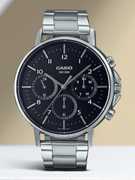 Mineral Glass::Black ion plated band::Black ion plated case::Date, day and 24-hour indicator::Regular timekeeping: Analog: 3 hands (hour, minute, second), 3 dials (date, day, 24-hour)::Accuracy: 20 seconds per month