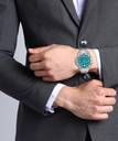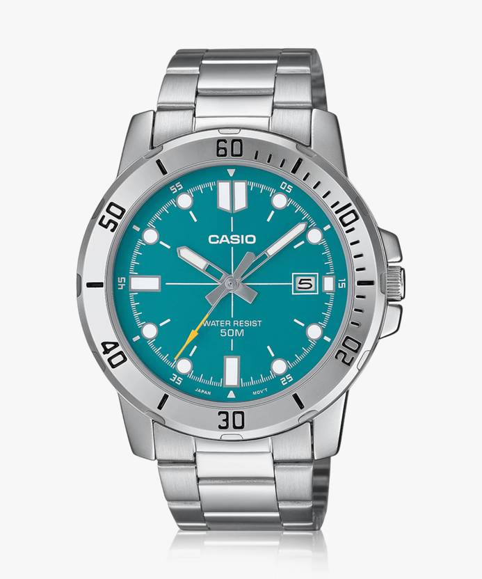 Make a stylishly cool statement with a deliciously detailed finish and a gorgeous, colorful dial. The thick bezel adds a sporty touch to a metal analog watch designed around the classic hour, minute, and seconds hand look. Water resistance up to 50 meters frees you from worry when washing up or working with water.
