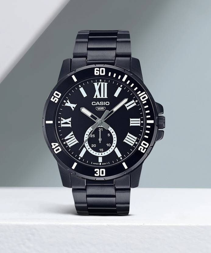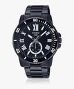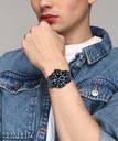 The round watch face features a striking inset dial with handy day display for a touch of extra interest. Water resistance for daily use frees you from worry when washing up or out in the rain.