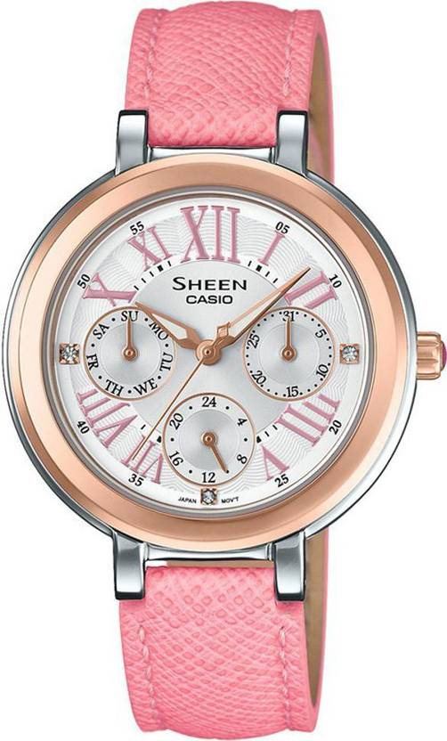 Mineral Glass, Date, Day and 24-hour Indicator, Sparkling Swarovski Crystals for Hour Markers, Regular Timekeeping - Analog: 3 Hands (Hour, Minute, Second), 3 Dials (24-Hour, Date, Day), Accuracy: +/- 20 Seconds per Month