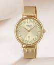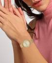 The single-tone finish harmonizes with the color of the dial, a single crystal sparkling subtly at the 7 oclock position. The case and band are ion-plated in the same color family as the dial, for a sophisticated monochromatic look.
