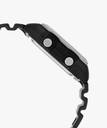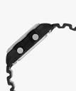 Inspired by 1990s sports design, the face features two bars and a circle at the top that display three different timers the 1/20 second stopwatch in a color bar above, the ten-second stopwatch in the bar below, and the one-minute stopwatch in a circular display at the right.