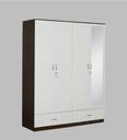 CASPIAN Wooden Almirah for Clothes and Stacking space -Home Furniture Storage Engineered Wood 4 Door Wardrobe (Finish Color - White & Brown With Mirror, Mirror Included, Pre-assembled)