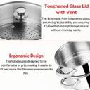 Compatible with both induction and gas stoves, this steamer is versatile for every Indian kitchen. The tempered glass lid with steam vent allows easy monitoring, while the heat-resistant handles ensure safe handling. Easy to clean, rust-free, and dishwasher safe – this steamer makes everyday cooking simple and modern.