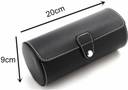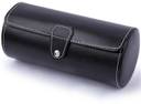 Premium PU Leather Round Shape Watch Case for Travel with Lock and Cushion Black