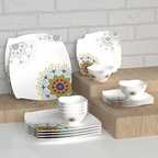 Castleite Pack of 18 Melamin Marvella Sunset Glow Edgy Designer Crockery Dinner Set (White, Orange)
