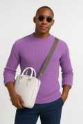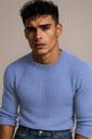 Cat Bunny Self Design Round Neck Casual Men Light Blue Sweater