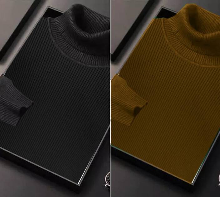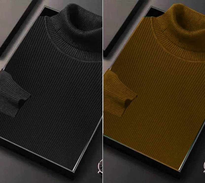 Men Solid High Neck Multicolor Sweater