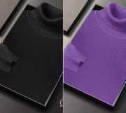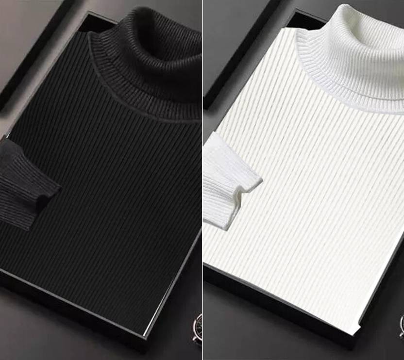 Cat Bunny Solid High Neck Casual Men Black, White Sweater