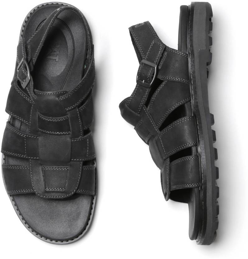 A pair of black sports sandals, secured withnbsp;Velcro closureLeather upper, has a forefoot strap and a midfoot strap that forms an ankle loopCushioned footbedTextured outsole with patterned grooves with Built Touch technologyWarranty: 90 days against manufacturing defects onlywww.cat.com © 2014 Wolverine World Wide. All Rights Reserved. CAT, CATERPILLAR, BUILT FOR IT, their respective logos, Caterpillar Yellow, the Power Edge trade dress as well as corporate and product identity used herein, are trademarks of Caterpillar and may not be used without permission. Tata International Wolverine Brands Limited is an authorized distributor of the following licensees of Caterpillar Inc.: JP Divver Holding Company Ltd., Wolverine Worldwide and Grown Up Licenses.. Step up your sports accessory collectionnbsp;with this pair of sports sandals from CAT. They are durable and shock resistant promising enhanced support to give you happy feet.