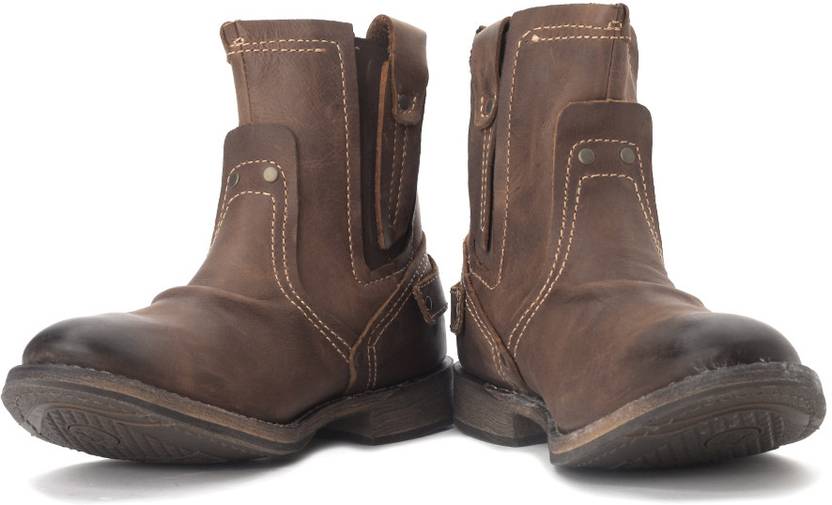 Elastic Gusset on Sides, Raised Ankle, Loop at Back, Panel and Stitch Detail, Buckle Detail at Back