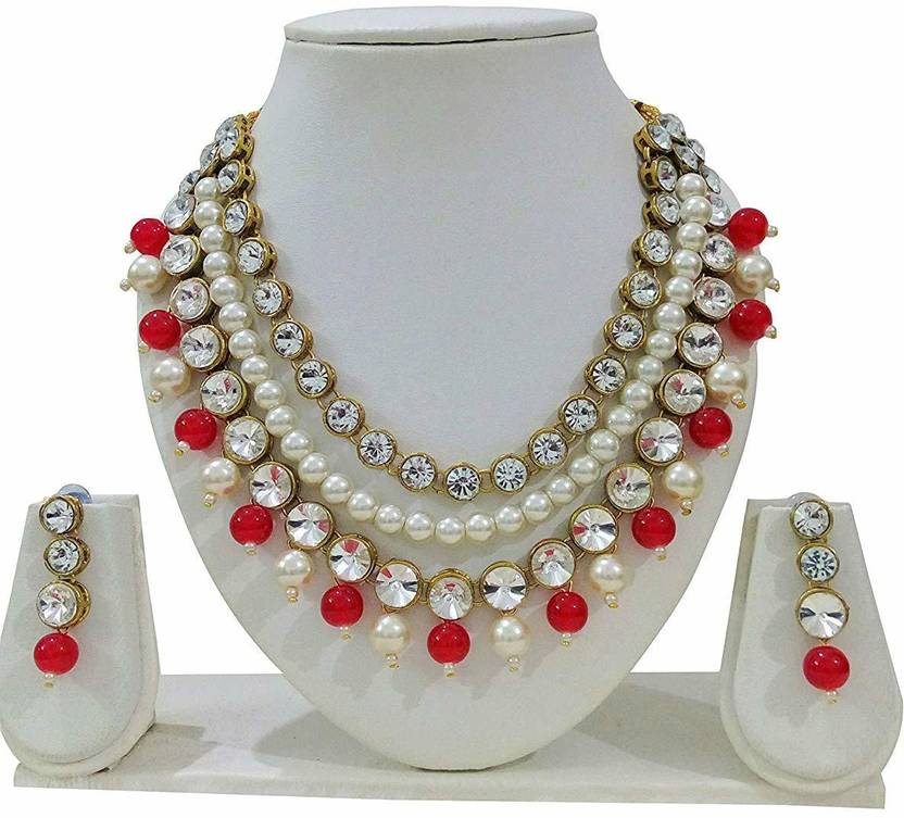 CATALYST Mother of Pearl Brass White, Red Jewellery Set (Pack of 1)