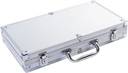 The poker chips, dices and playing cards are all organized in a sturdy aluminium case, which makes it easy to store and carry.