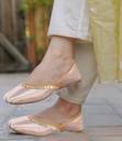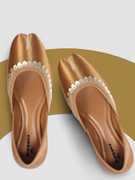 Experience the timeless elegance of Indian tradition with these exquisite Catbird handmade Lace Work Ethnic Juttis. Handcrafted with meticulous attention to detail, these juttis feature a stunning blend of tan satin and gold embellishments. The soft, comfortable insole and lightweight design ensure all-day comfort, making them perfect for any occasion.