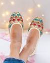 Add a vibrant touch of Indian heritage to your wardrobe with these stunning Catbird Multi Thread Embroidered Ethnic Jutis. Handcrafted with exquisite detail, these Jutis feature a captivating mix of colours and intricate embroidery patterns. The soft, comfortable insole and lightweight construction make them perfect for everyday wear, while the vibrant embroidery adds a touch of personality.