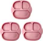 Cathiya sales Set of 3 Self-Feeding Baby Dish With Suction Cups,Toddler Plates, Microwave Safe - Silicone (Rose Pink)