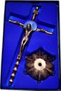 Catholic Liturgicals Altar Cross, Jesus Cross, Bamboo Design - Copper & Blue Decorative Showpiece - 22 cm (Metal, Copper, Blue)