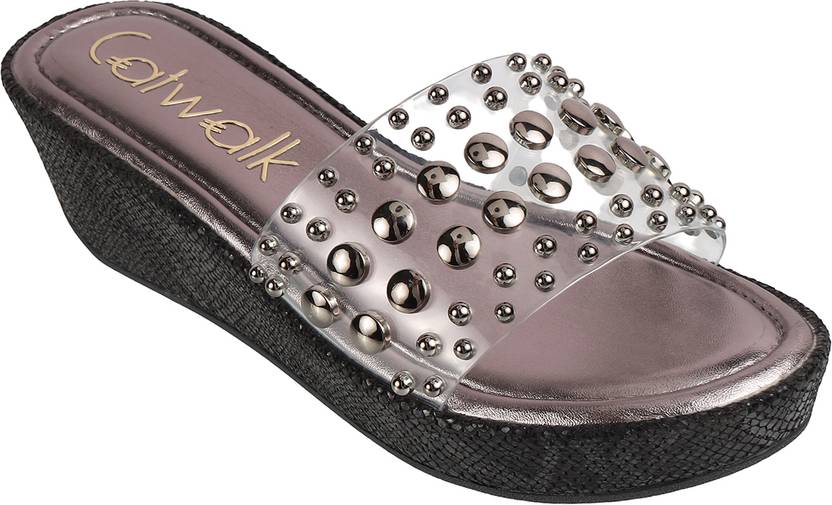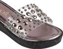 Women Casual Sandal (Silver, Black , 8)