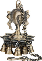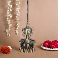 Cave Brass Shankh Chakra Diya & Hanging Bell Brass Hanging Diya (Height: 19.3 inch)