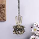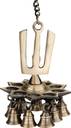 Cave Namah Design 9 Oil Wick Lamp|Home Decor|Diya,Deepak Diya Bell Set Brass Hanging Diya (Height: 12.5 inch)