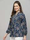 Cavercha Casual Floral Print Women Dark Blue Top