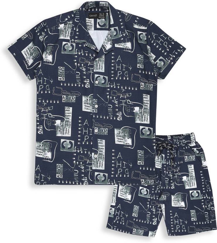 CAVIO Boys Blue Trendy Printed Pure Cotton Shirt And Shorts Clothing Set