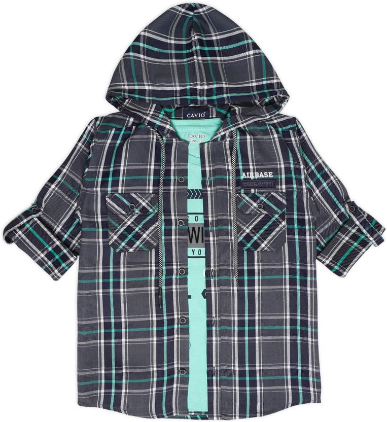 Elevate your young champ's style quotient with our Boys Checkered Hooded Shirt .To complete the casual ensemble, we also offer a graphic printed t-shirt as part of this set, allowing for versatile styling options. Whether it's a weekend hangout or a casual outing, our boys Checkered Hooded Full Sleeve Casual Shirt with T-shirt combo is the perfect choice for trendy and effortless fashion.