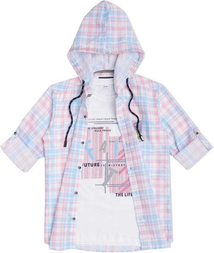 CAVIO Boys Regular Fit Checkered Hood Collar Casual Shirt