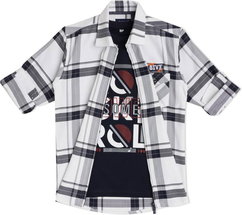 Boys casual Checkered Shirt With T-Shirt is the perfect combination for any casual look. The fabric provides a classic and timeless feel, and the Flap pocket adds a touch of modern style. The lightweight design ensures you stay comfortable all day, and the two-tone colour palette allows for endless styling options. Whether you're running errands or out for a night with friends, this casual Shirt With Graphic Print T-Shirt will have you looking stylish and put together.